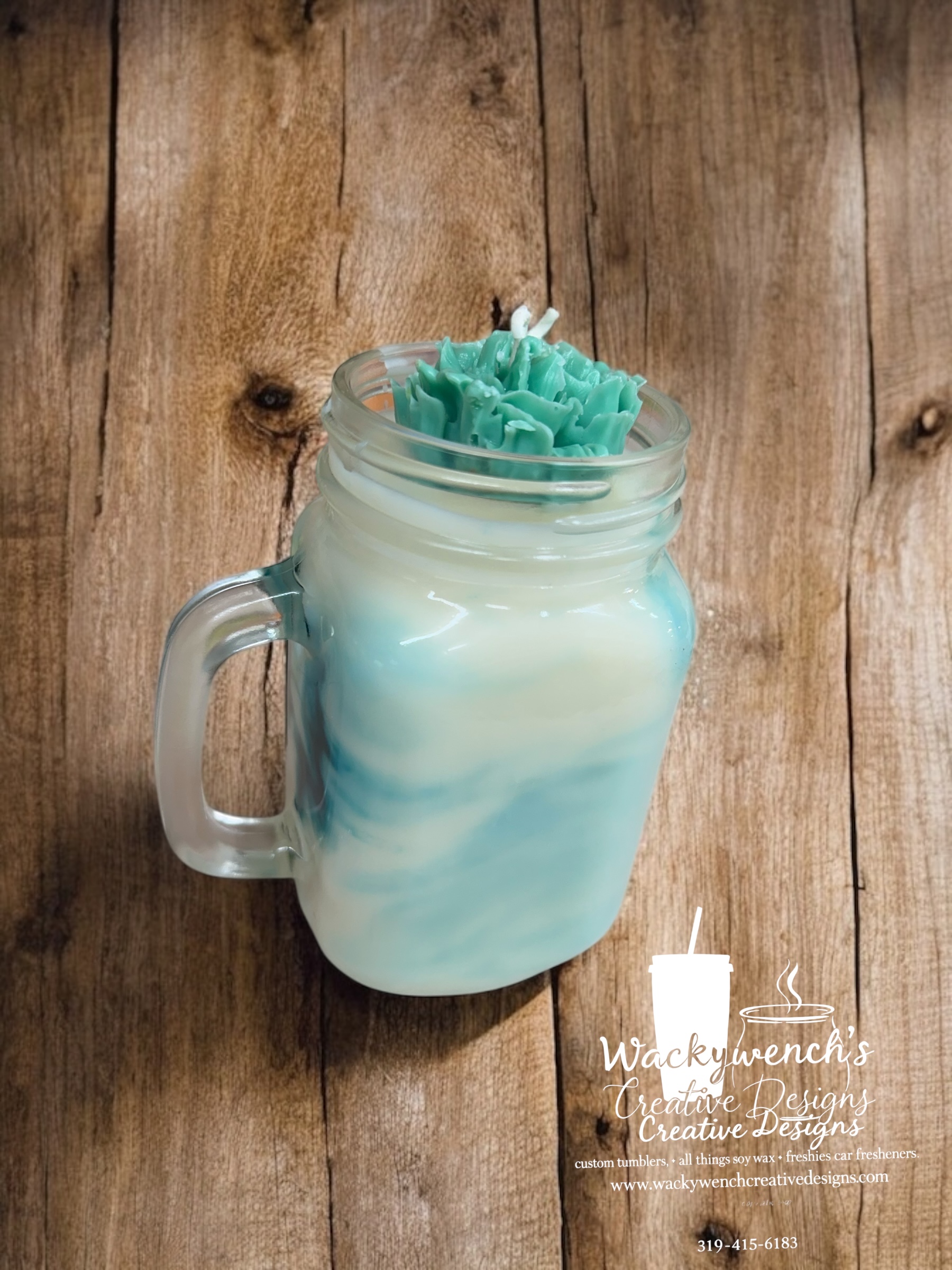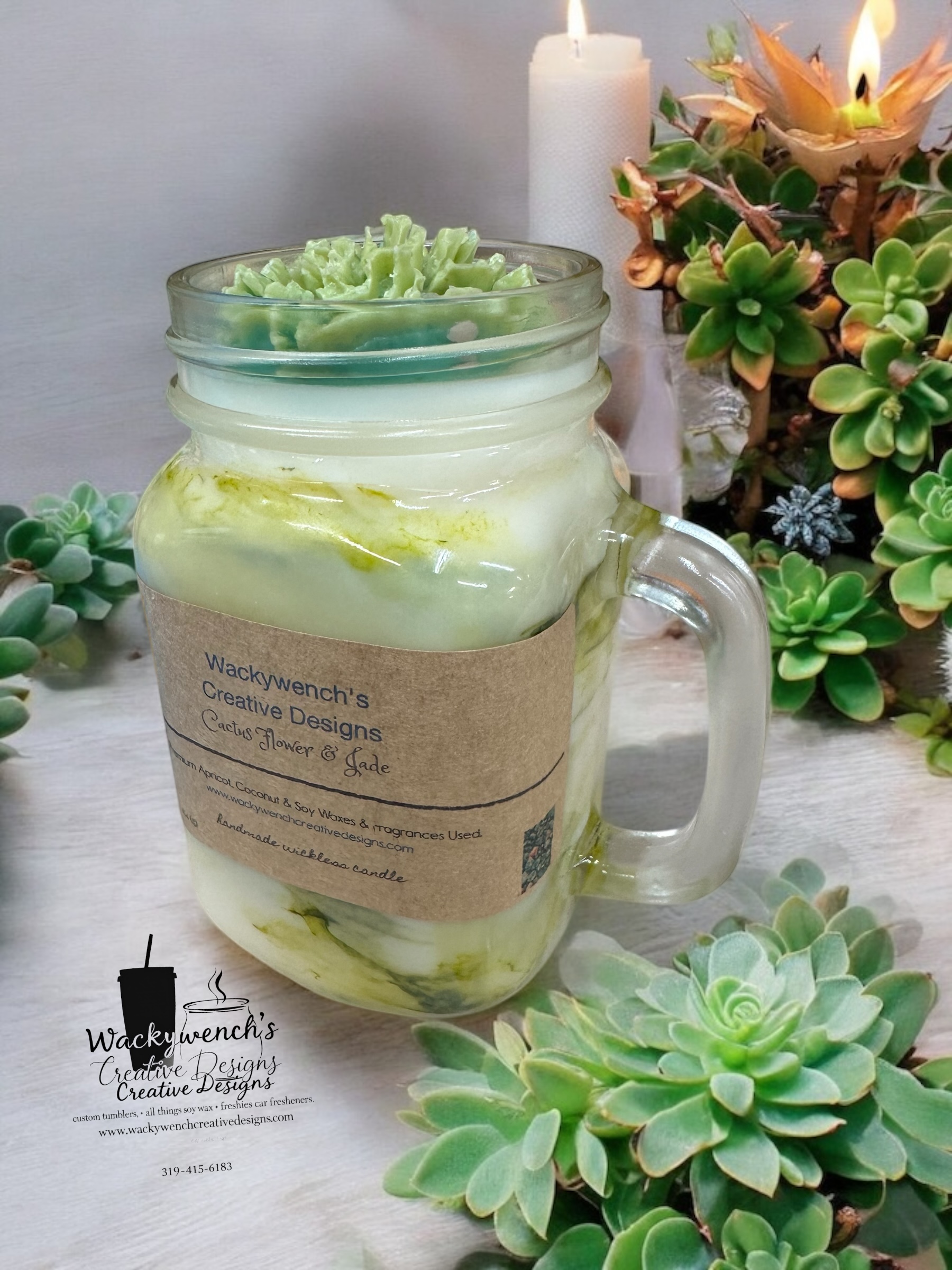Pint clear Jars glass container Candles. Some have handles, some w/o handles, some w/lids & straws. Fragrances: Cactus Flower & Jade, Palo Santo Patchouli